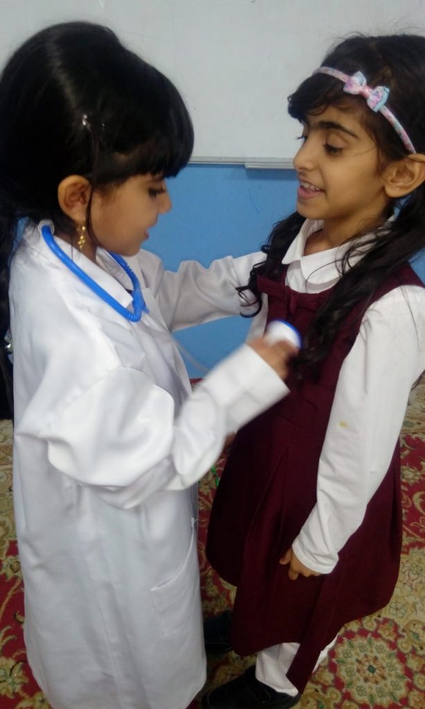 تعتبر استراتيجية تمثيل الادوار من الاستراتيجيات الفعالة في التعلم النشط عند الطلاب وخاصة في المراحل الأولى ومن هذا المنطلق قامت الأستاذة /رباب معلمة اللغة العربية للصف الثاني بتحقيق استراتيجية تمثيل الأدوار في درس (الفحص الطبي)حيث قام الطلاب بتجسيد دور الطبيب والمريض واستنتاج أن أركان الصحة ثلاثة:(رياضة ونظافة وغذاء)