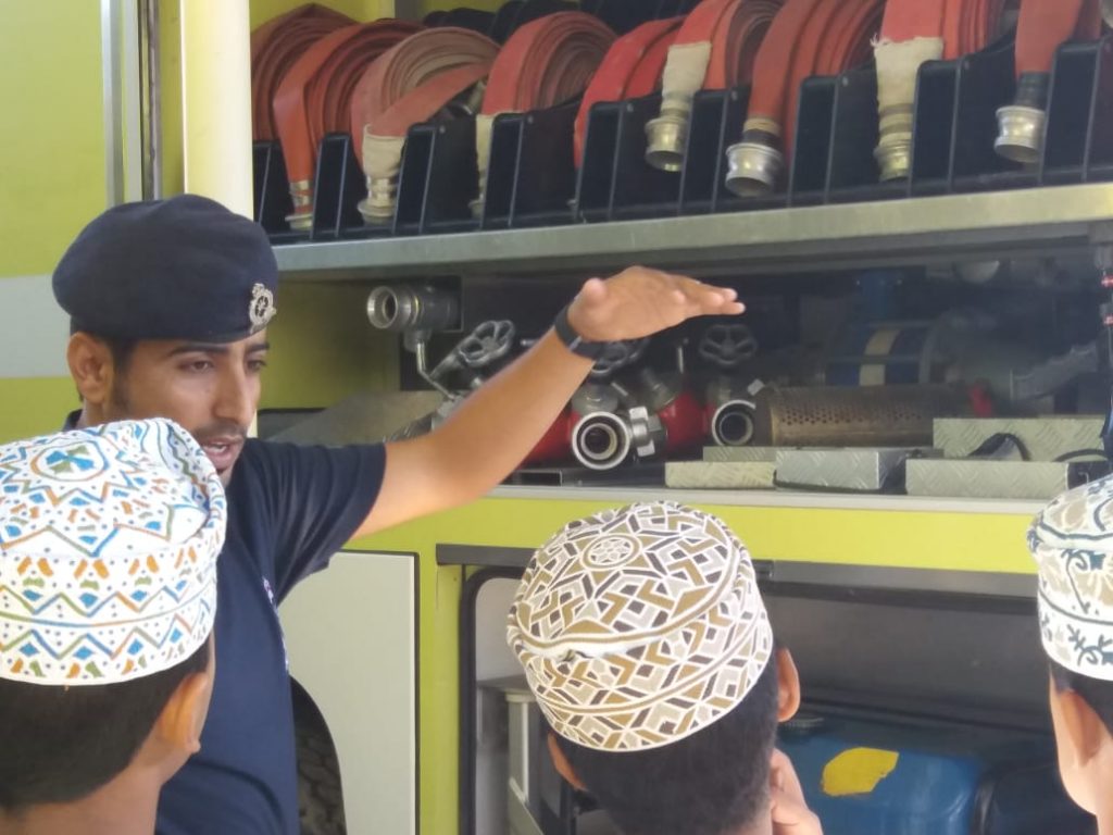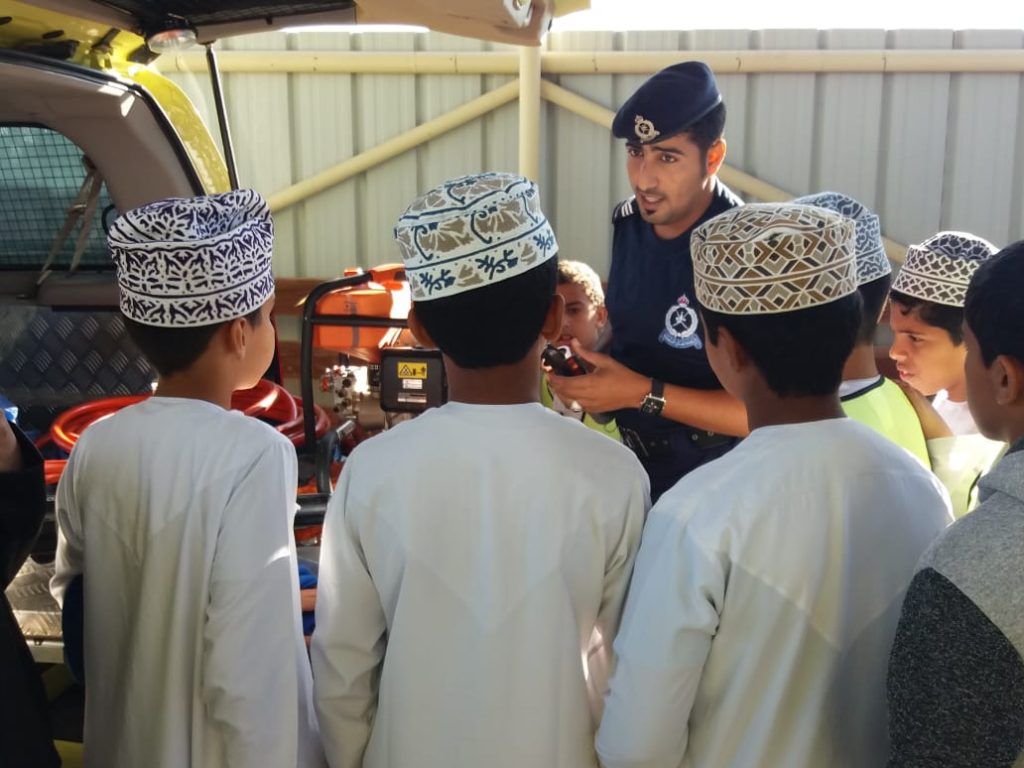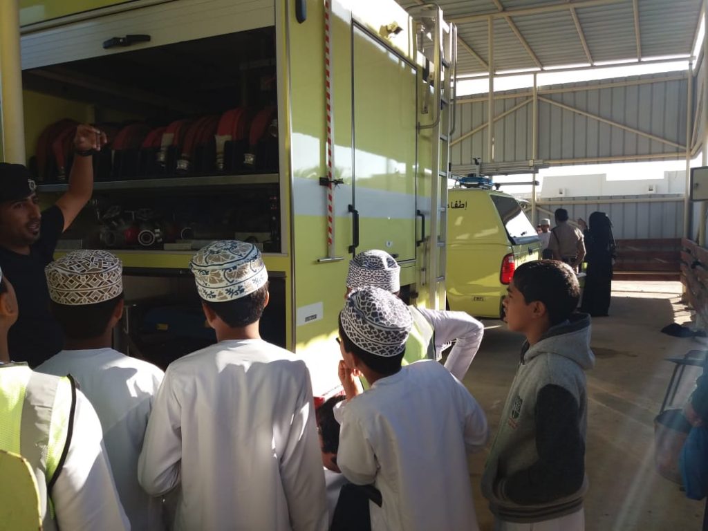 ومن هذا المنطلق قامت مدرسة جعلان الخاصة في يوم الثلاثاء بتاريخ 4/12/2018 برحلة طلابية للدفاع المدني لتعريفهم على أهمية الدفاع المدني ومهامه حيث استقبل الطلاب كلا من الوكيل صالح علي الكاسبي والرقيب إبراهيم حمد الكاسبي حيث قاموا بتعريف الطلاب بمن هم الدفاع المدني وطبيعة عملهم وطرق الإنقاذ المختلفة لديهم ومسؤولياتهم تجاه خدمة الوطن والمواطن ومن ثم قاموا بأخذ الطلاب للاطلاع على سيارات الدفاع المدني وما تحتويه من أجهزة ومعدات الإنقاذ للأفراد.