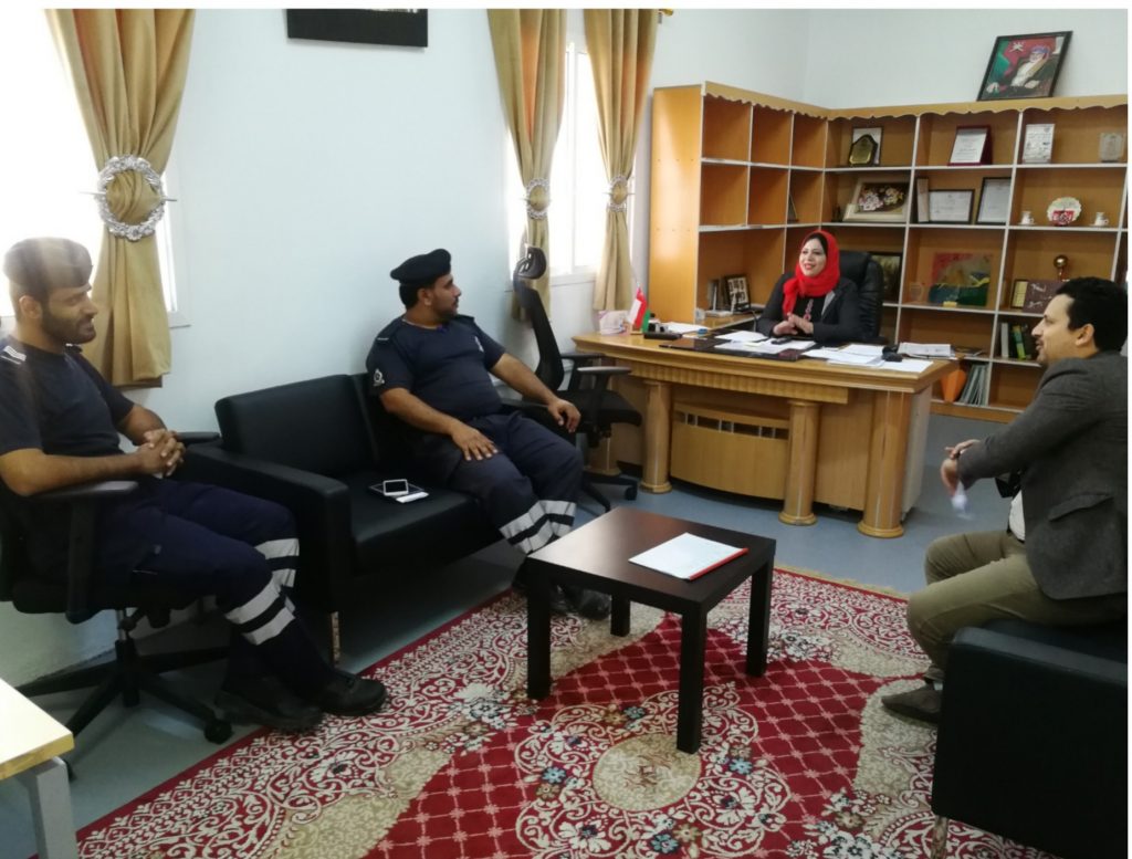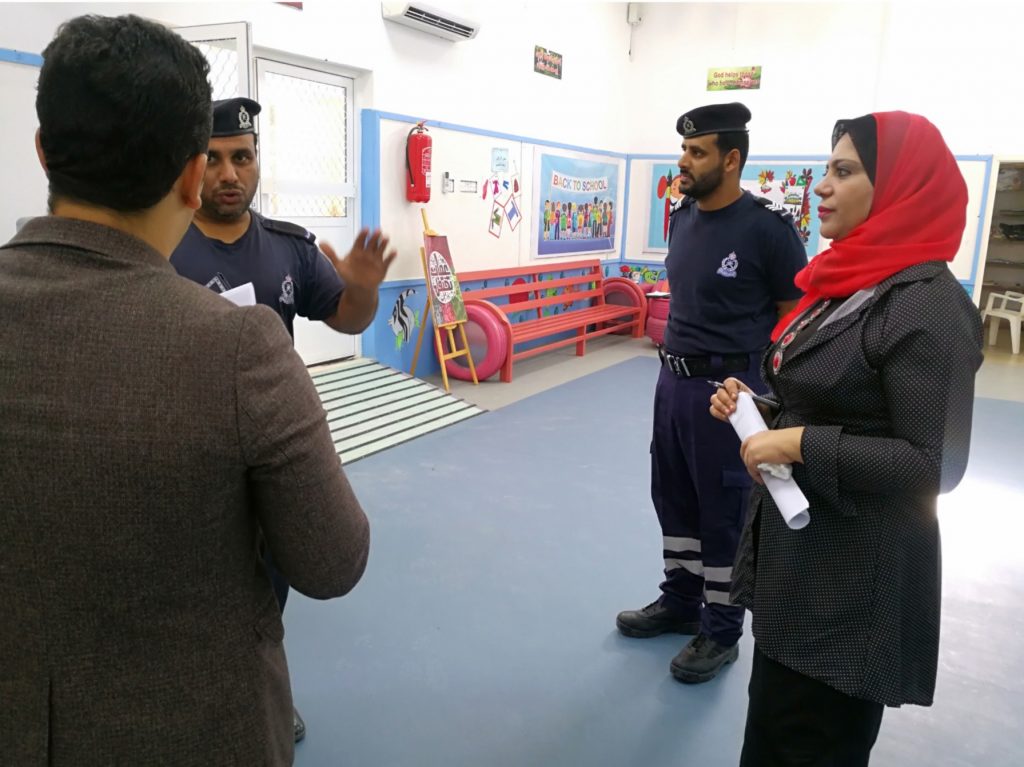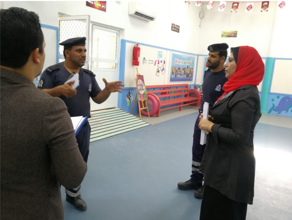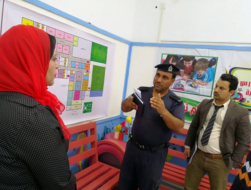 ثم قاموا بجولة داخل المدرسة للتأكد من سلامة المبنى المدرسي وكتابة الملاحظات ومتطلبات المدرسة لتزويد المبنى بالنواقص اللازمة للأمن والسلامة في البيئة المدرسية.
