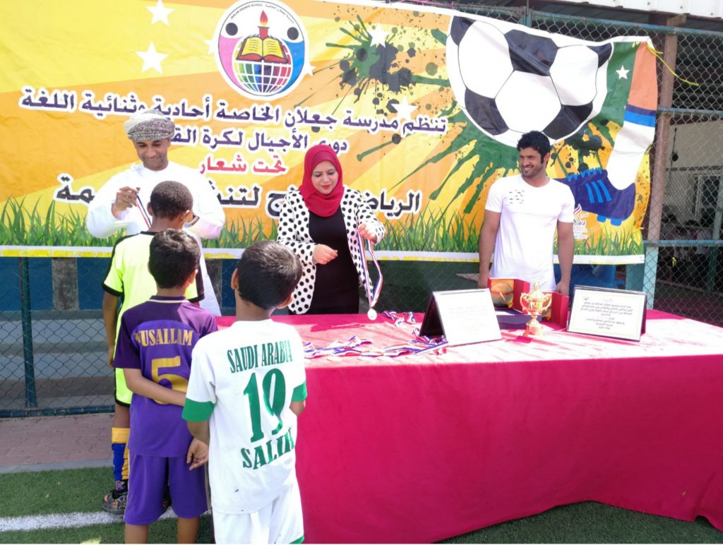 كرة القدم هي اللعبة الرياضية الأولى في العالم وما يميز كرة القدم ويُعطيها طابعاً خاصّاً وشغفاً لا مُنتهٍ هو أنّها لعبة جماعيّة تخلق روح المنافسة والتحدي بين الاعبين.. حيث نظمت مدرسة جعلان الخاصة بطولة دوري الأجيال ودوري البراعم تحت رعاية كلاً من عبدالله العريمي مدير دائرة المدارس الخاصة وناصر غريب البلوشي مدير مدرسة يعود بن عزان و كان التنافس بين مجموعة من المدارس الحكومة والخاصة وشهدت المباريات الكثير من التنافس بين الفرق حيث كان الفوز والتتويج من نصيب مدرسة العباس بن عبدالمطلب لبطولة دوري الأحيان كما توجت مدرسة مجان التعليم الأساسي بكأس البطولة لدوري البراعم
