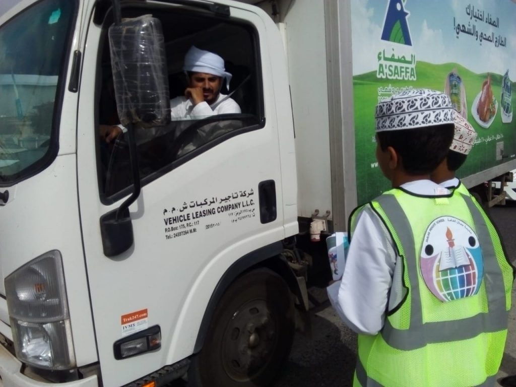 انطلاقاً من شعار “حياتنا بالسلامة أحلى” بادر طلاب مدرسة جعلان الخاصة بتوزيع منشورات من إعدادهم للسائقين عن القيادة السليمة والسلامة المرورية بالتعاون مع شرطة عمان السلطانية.