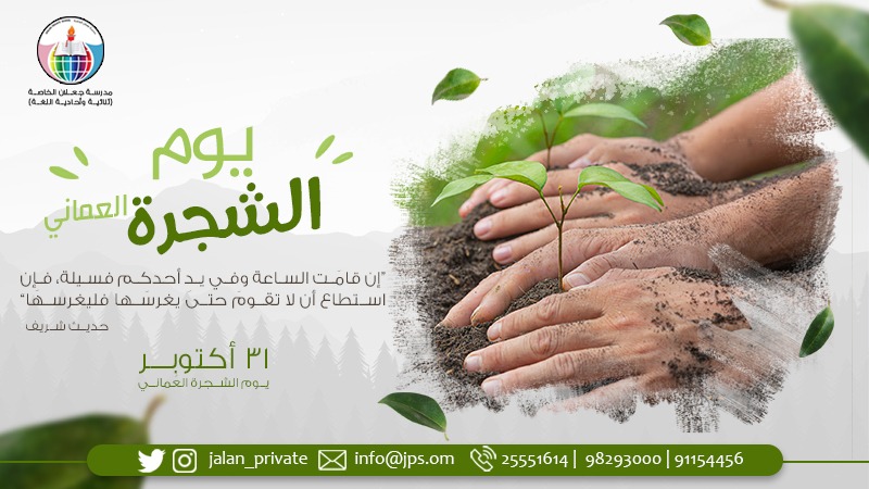 واحتفالًا بيوم الشجرة والذي يوافق الحادي والثلاثين من شهر أكتوبر قام طلاب الروضة والتمهيدي بناء على الاتفاق الذي قام بين مدرستنا ومشتل “البعد الراقي” بجعلان بني بوحسن حيث انتقل الطلاب بصحبة المعلمات إلى المشتل واستقبلهم مسؤول المشتل وانتقل بهم بين أنواع الزرع المختلفة ،ووضح لهم كيفية الزراعة الصحيحة وأنواع الشتلات، وكيفية العناية بها ، وأدوات الزراعة ، وفي نهاية الرحلة أهدى المشتل كل طالب شتلة زراعية ليغرسها في حديقة المدرسة .