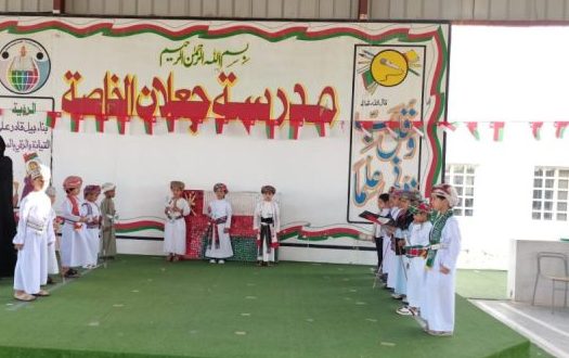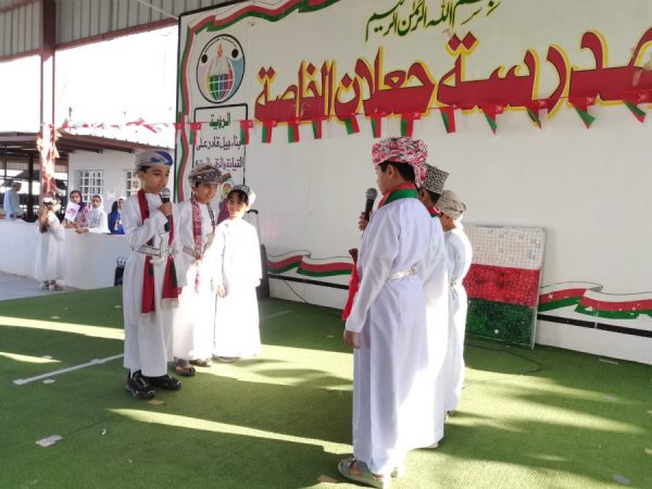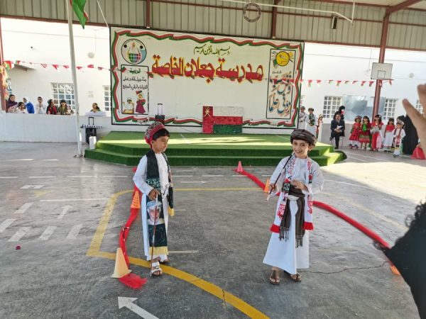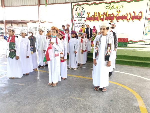 احتفلت الهيئة الإدارية والتدريسية  بمدرسة جعلان الخاصة بهذه المناسبة والتي نستقبل فيها العيد الوطني العماني بفرح وسرور كبير والتي تتزيّن بها البلاد وتتزيّن معها قلوب أبنائنا بأجمل عبارات وكلمات التّهنئة،حيث يهل علينا العيد الوطني 51 ليمثل محطة جديدة في مسيرة الفخر والعزة حيث عبر طلابنا عن فرحتهم بالعيد الوطني بمشاركاتهم في الاحتفال .
