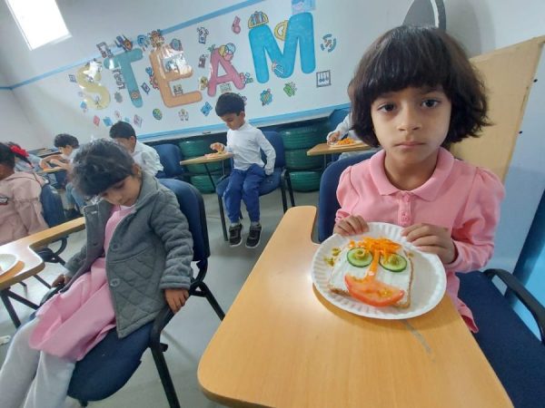 و من هنا نظمت معلمات رياض الأطفال فعالية “يوم الخبز” والذي تم من خلاله عرض مرئي عن أنواع المخبوزات وطريقة صناعتها والفائدة منها وكذلك تم مشاركة الطلاب في إعداد وجبة صحية بالخبز.